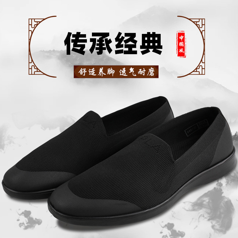 新式17布鞋休闲飞织男老北京布鞋透气帆布鞋男黑色一脚蹬布鞋舒适