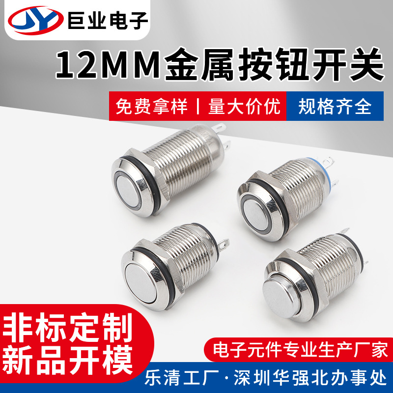 12MM金属按钮开关自复位平头高头按键开关2脚4脚按钮开关