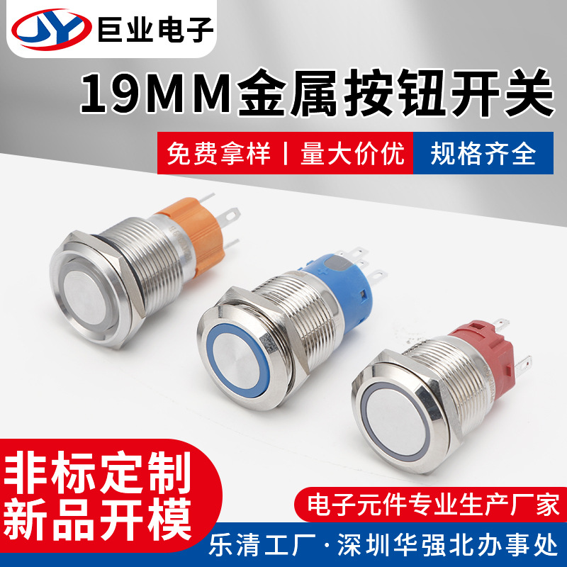 19MM金属按钮开关高平球头平头复位开关按键汽车改装键启动开关