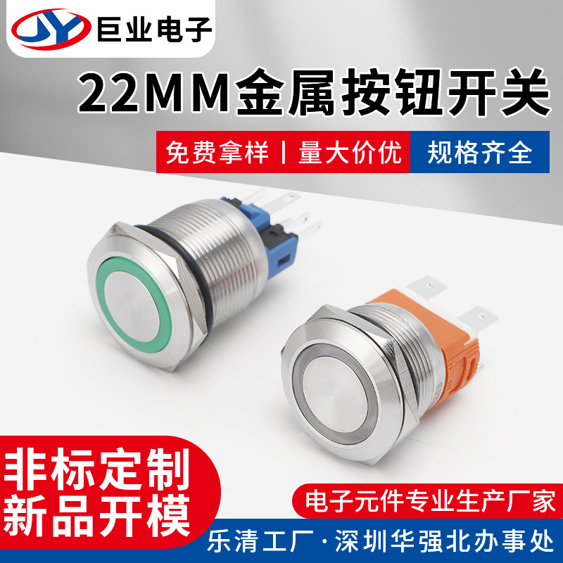 22MM金属按钮开关自复位自锁圆形带灯LED电源启动按键开关