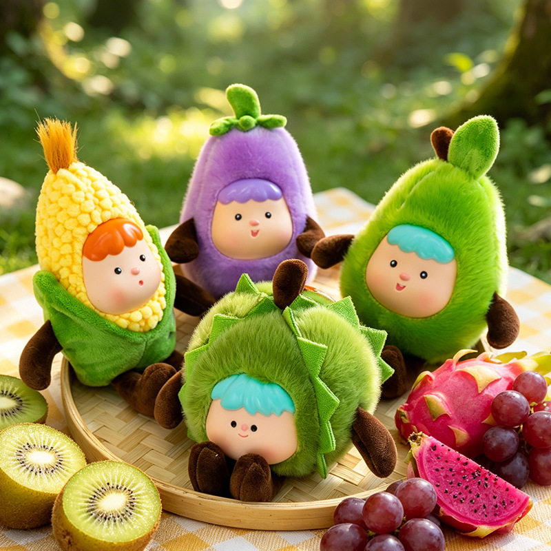 创意果蔬搪胶脸毛绒公仔可爱玉米茄子挂件玩偶少女礼物批发
