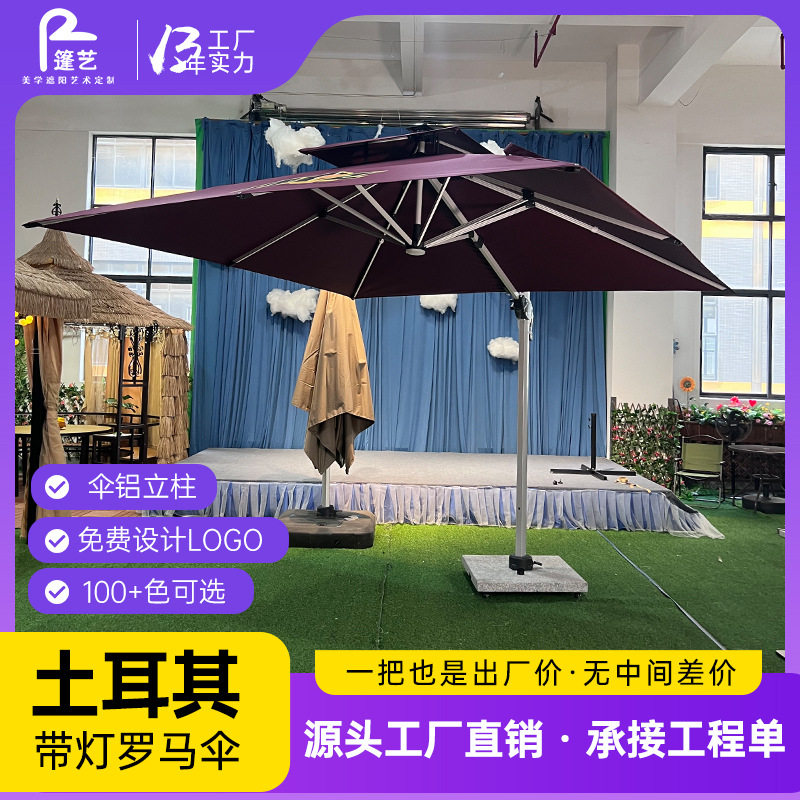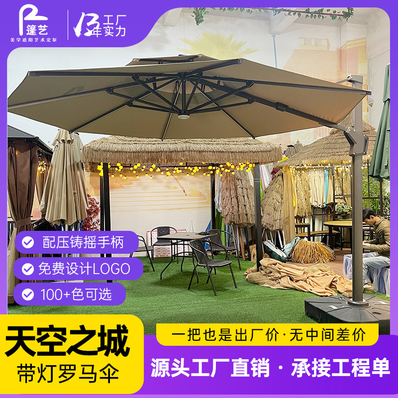 太阳能灯珠户外遮阳伞农家乐民宿带灯罗马伞防雨大型折叠伞露台伞