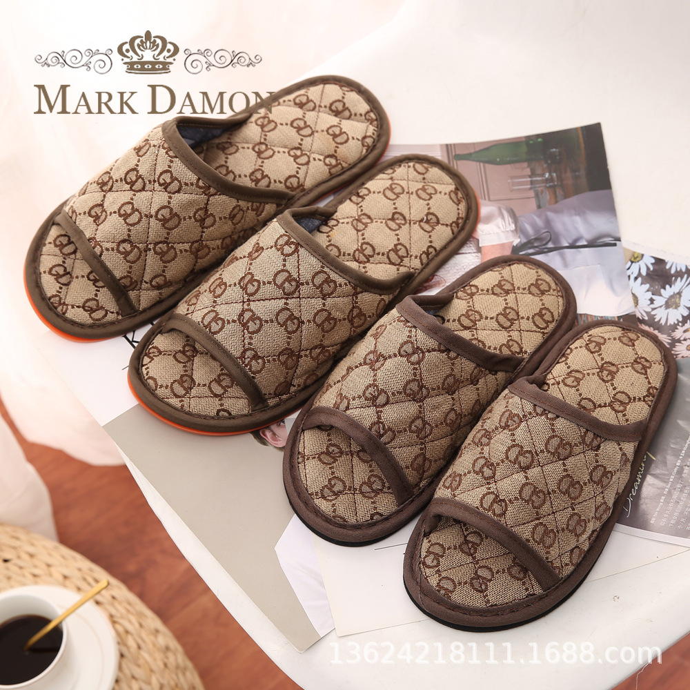 四季居家布艺男女情侣高端防滑静音奢华家居室内地板拖鞋简约