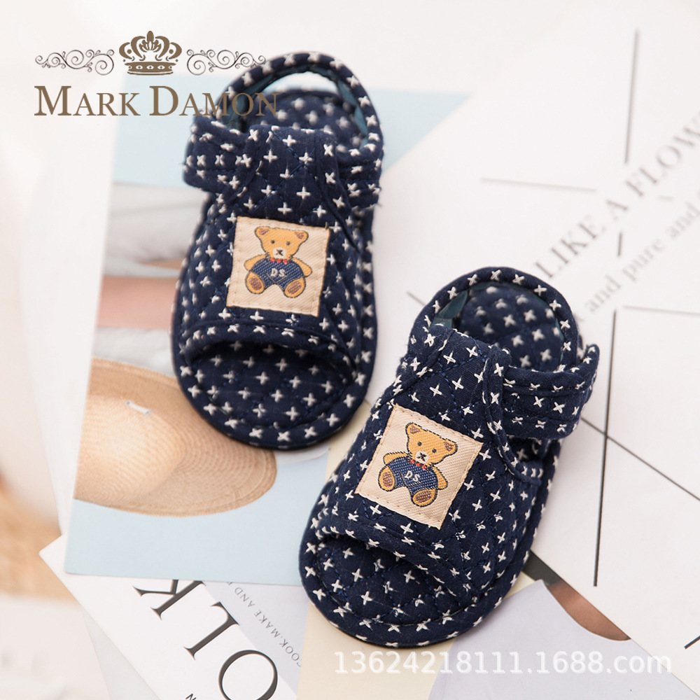 批发春夏季居家儿童学步鞋室内静音纯棉布底软底实地板拖鞋布艺