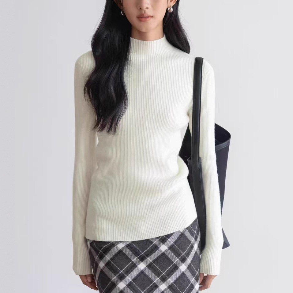 半高领针织衫女冬季2025新款白色长袖修身打底毛衣内搭气质上衣