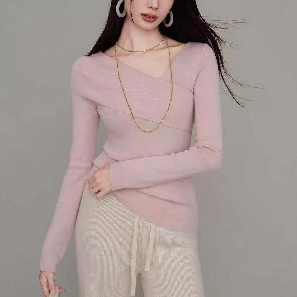 ron&ron设计感斜领纯色针织衫秋冬穿搭法式修身别致绝美纯欲上衣