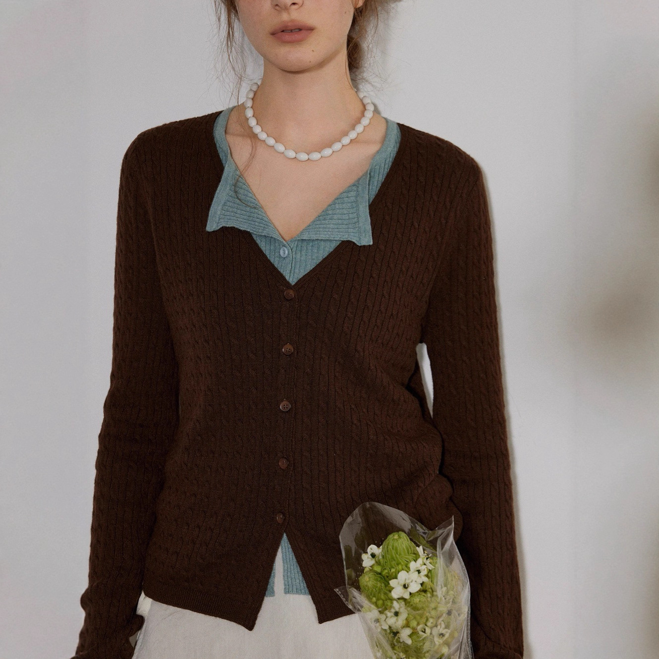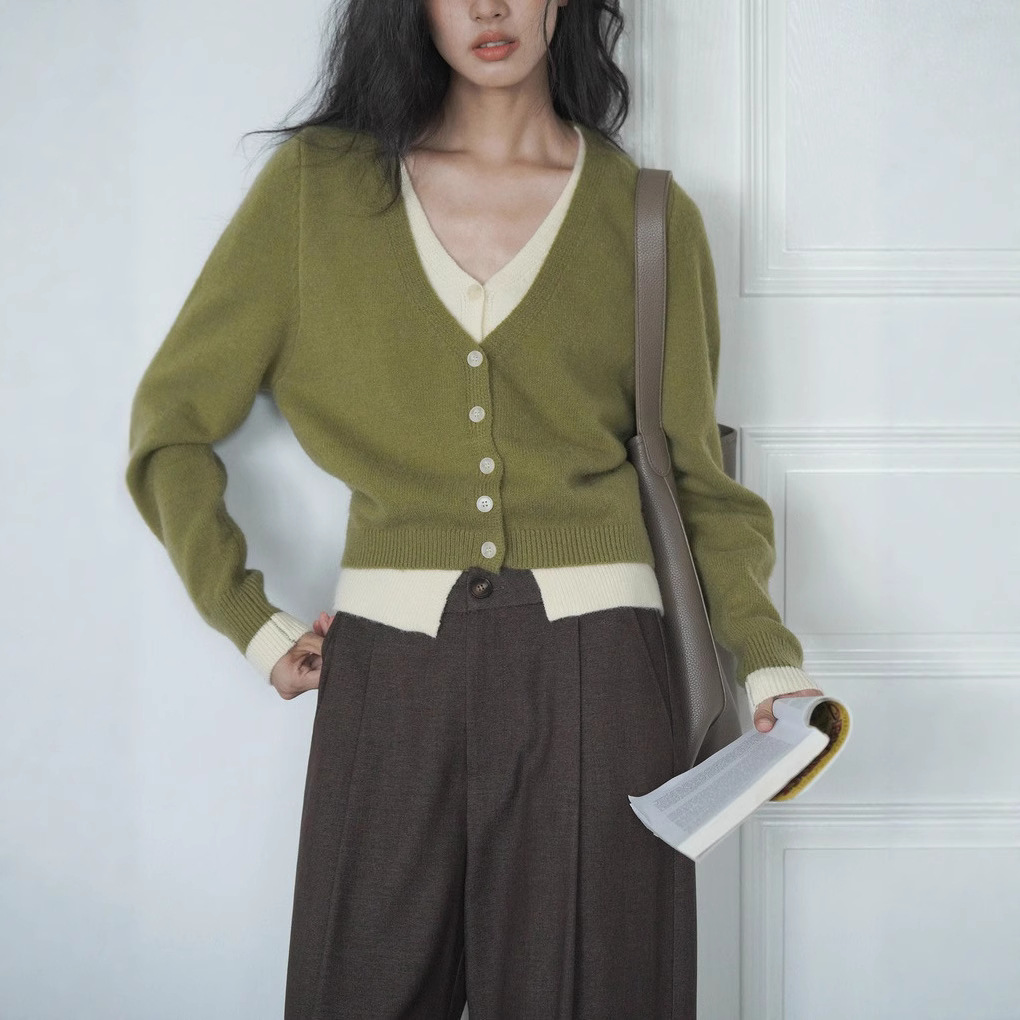 Lofi chiose 撞色v领假两件针织开衫女秋季新款气质百搭宽松上衣