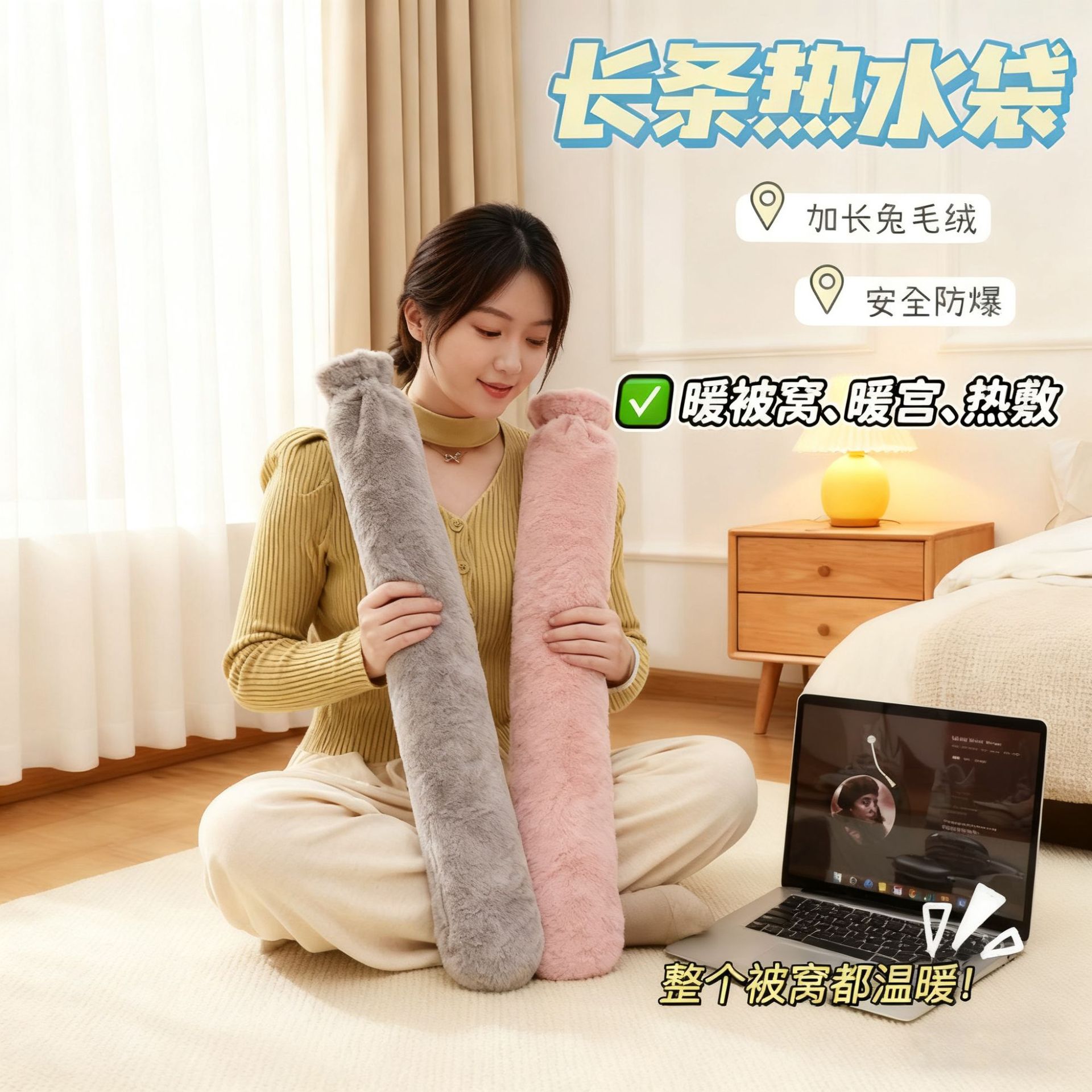 注水长款热水袋毛绒超长大号暖手水袋防爆敷肚子学生暖床暖身