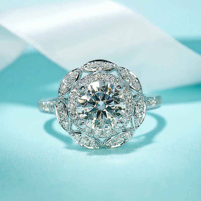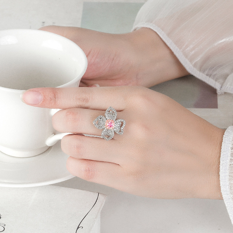 凯恒时尚国潮民族风花卉戒指 繁花大花朵镶钻戒指 花朵圆钻戒指环