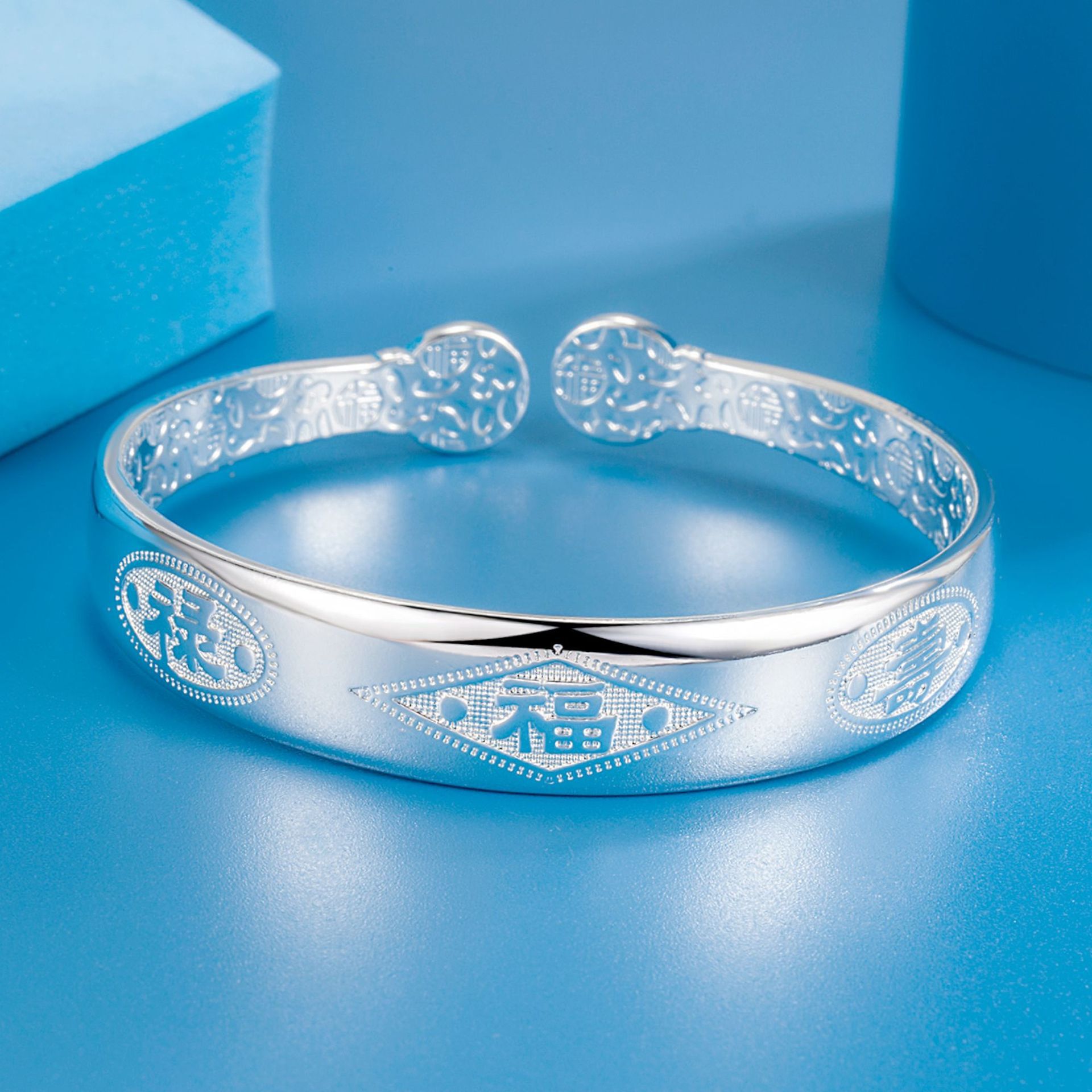 凯恒经典推拉福禄寿手镯雕刻字样福禄寿手镯花开富贵亮面手环饰品