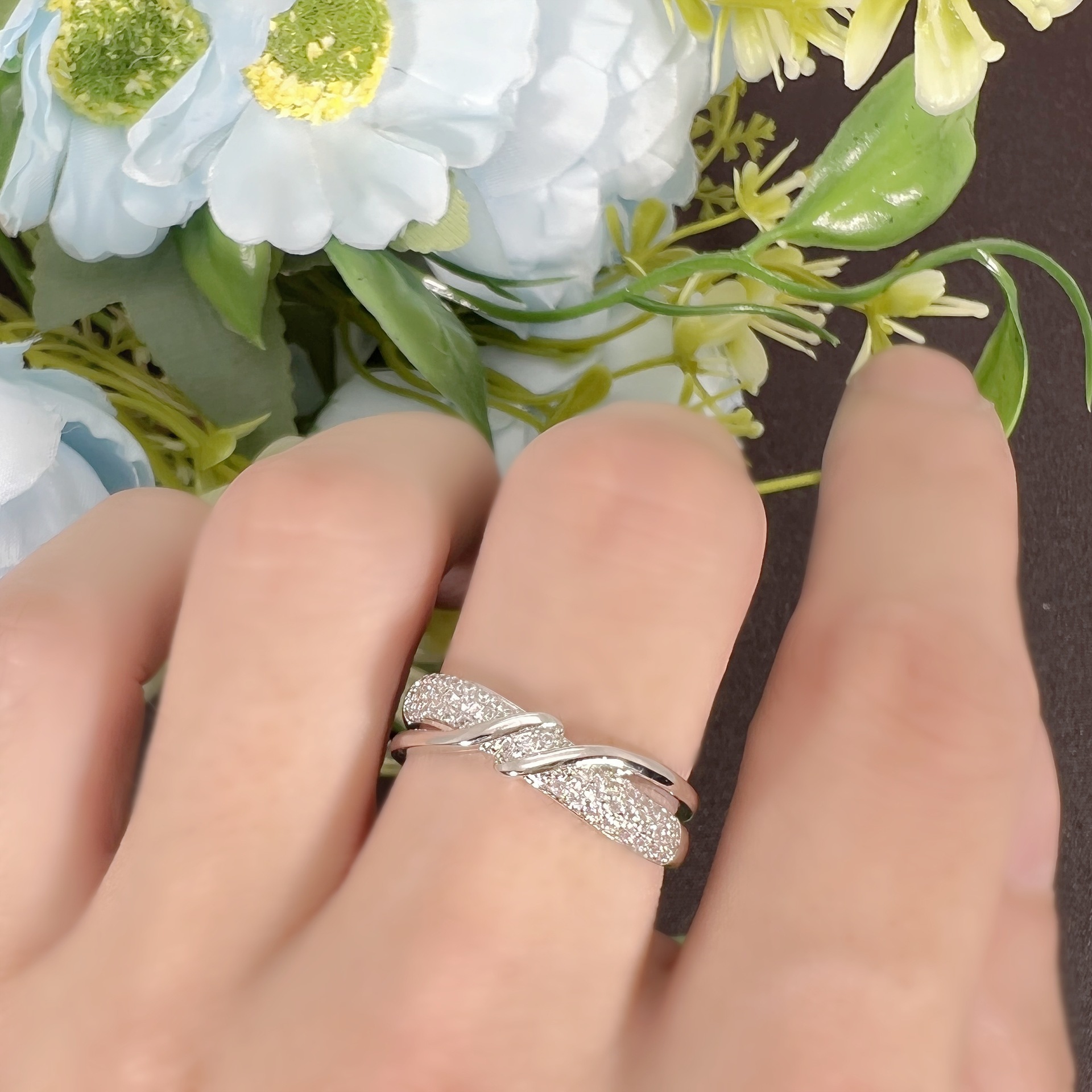 凯恒韩版气质双层交叉缠绕戒指开口个性潮流气质闪电线条锆石戒指