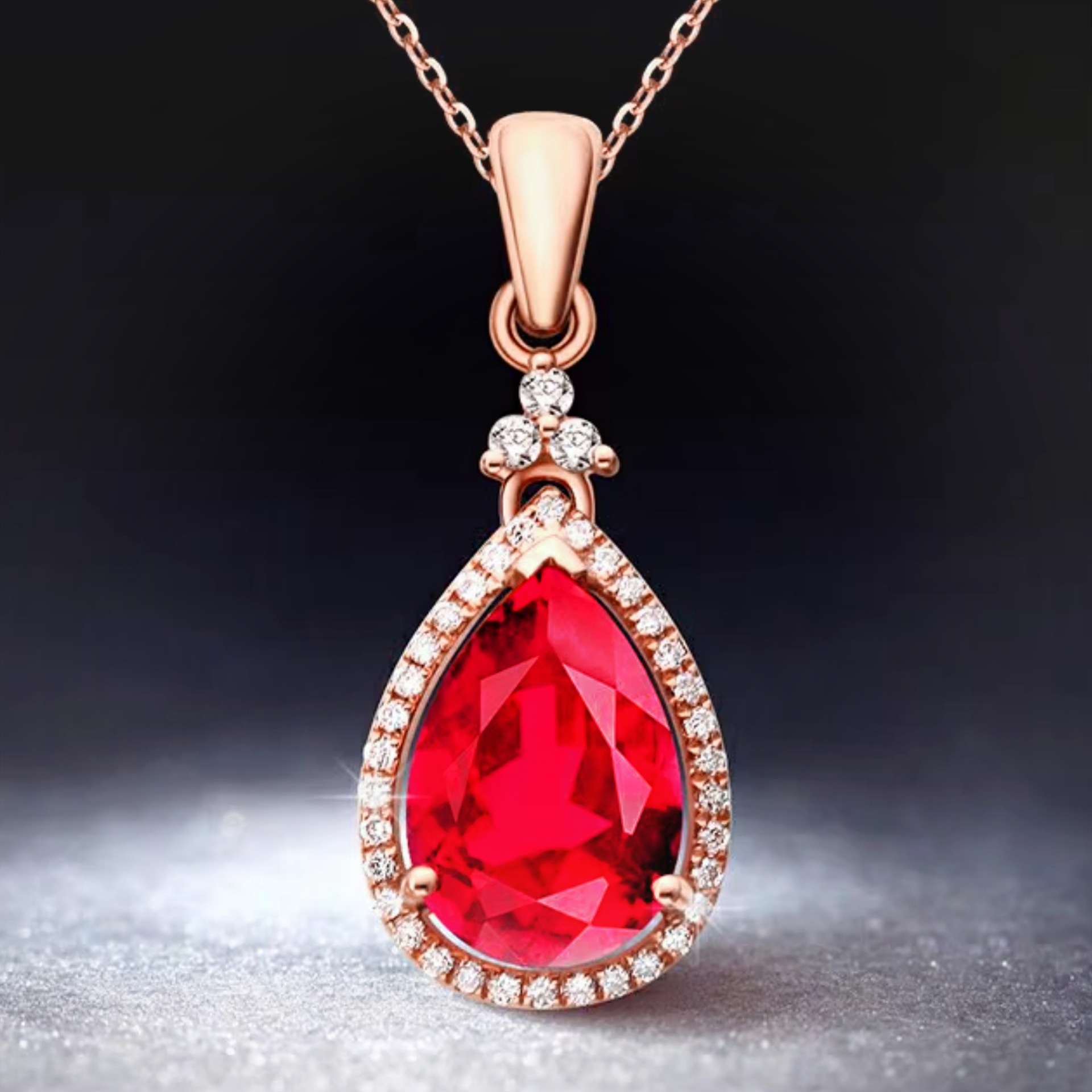凯恒韩版红宝石水晶水滴形吊坠项链海洋之心红水晶吊坠锁骨链项链