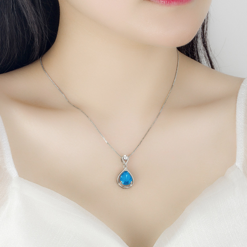 凯恒欧美创意水滴形紫钻海蓝钻吊坠项链 天使之泪彩宝水晶吊坠项