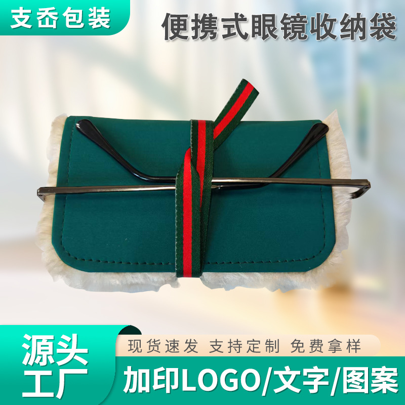 冬季毛绒便携式眼镜收纳盒加厚眼镜太阳镜保护套复古便携袋墨镜