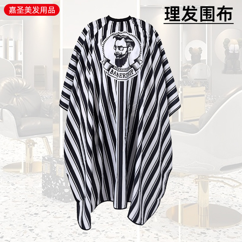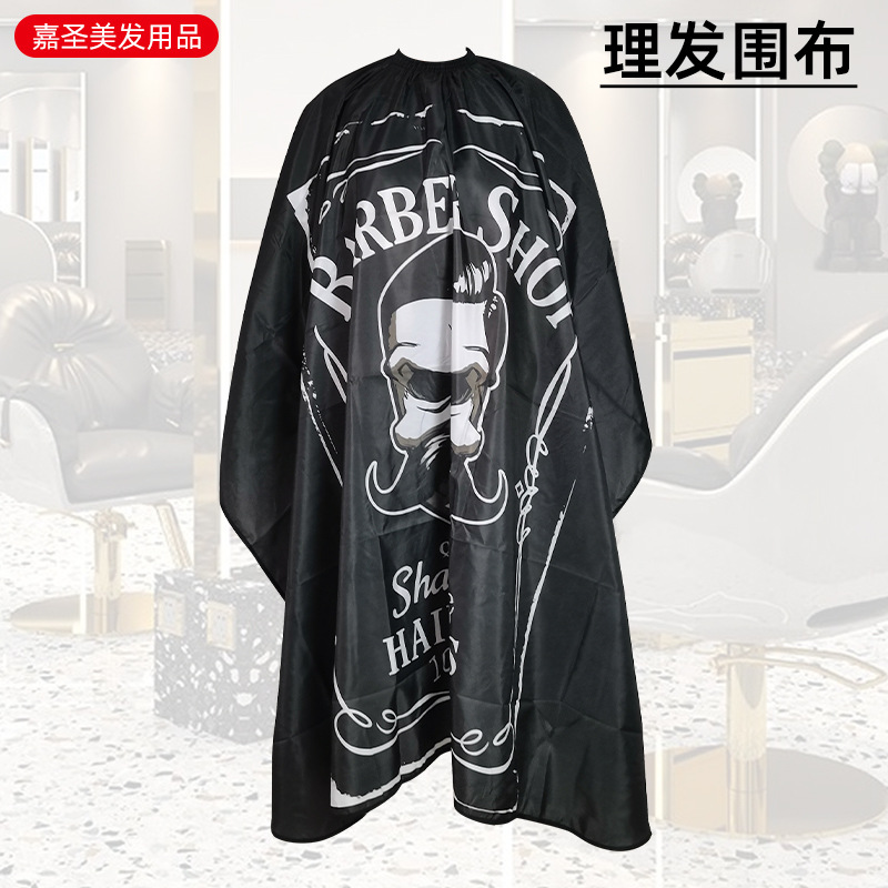 厂家黑白理发围布发廊焗油剪发围裙理发店成人烫染烫金印花围布