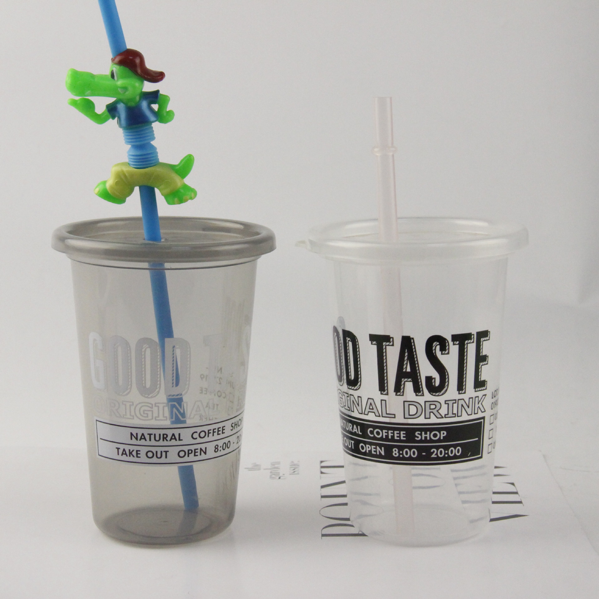 网红卡通吸管杯塑料儿童奶茶杯透明简约材质果汁饮料杯冷饮杯