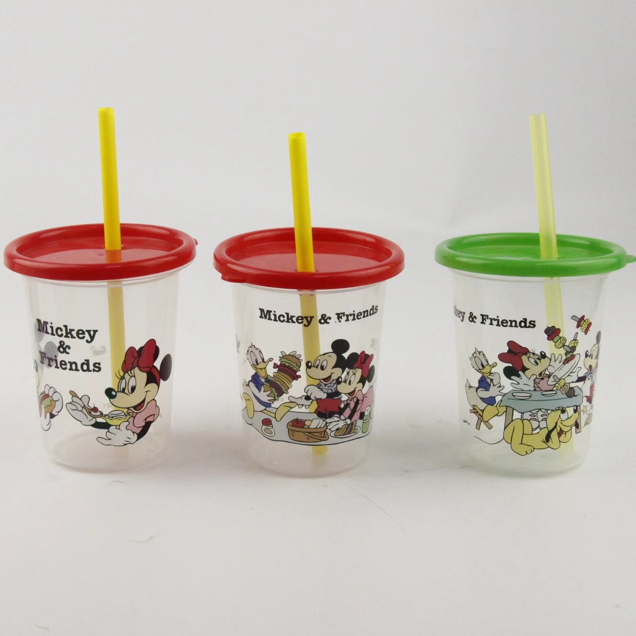 创意卡通塑料儿童吸管杯透明简约材质果汁饮料杯冷饮杯奶茶杯