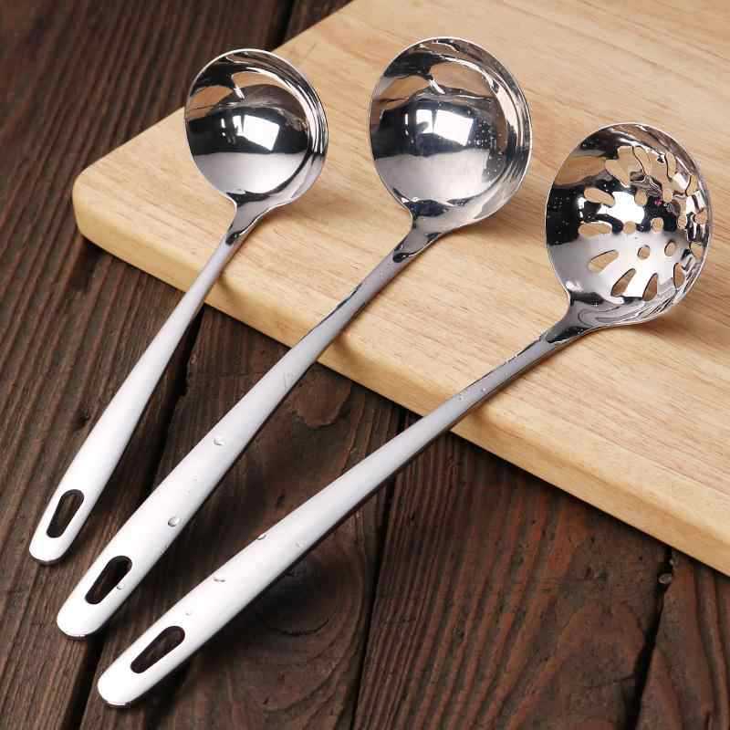 304不锈钢勺子家用长柄火锅勺防烫盛汤勺漏勺套装大号款1加厚加长