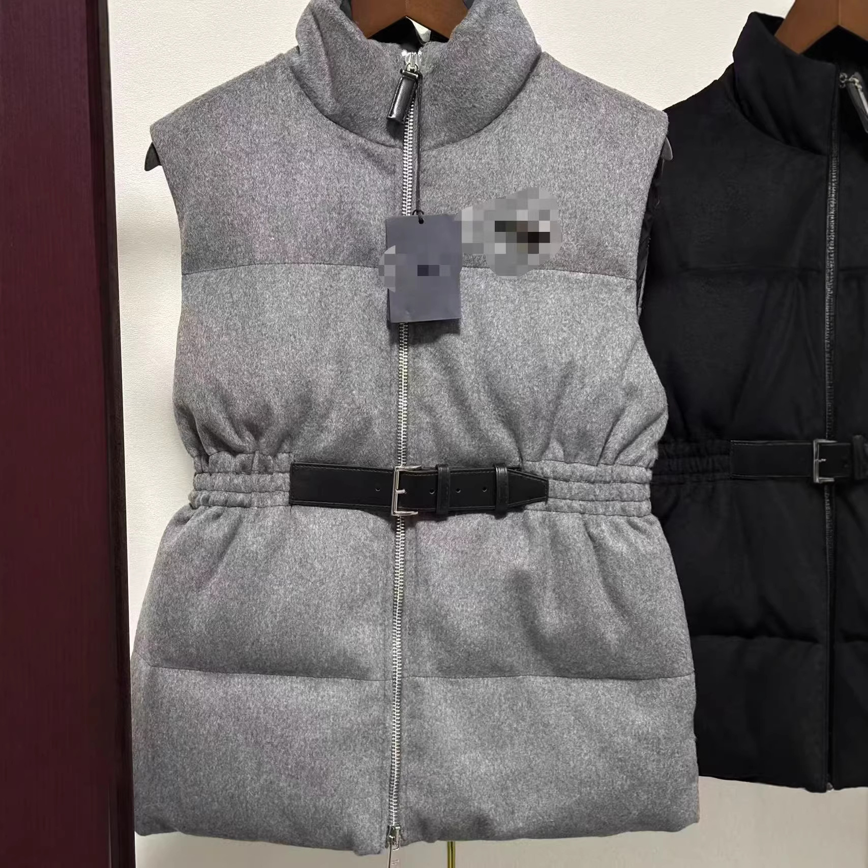 跨境严选高版本pd家2026新款时髦立领羊毛皮带收腰羽绒马甲款外套