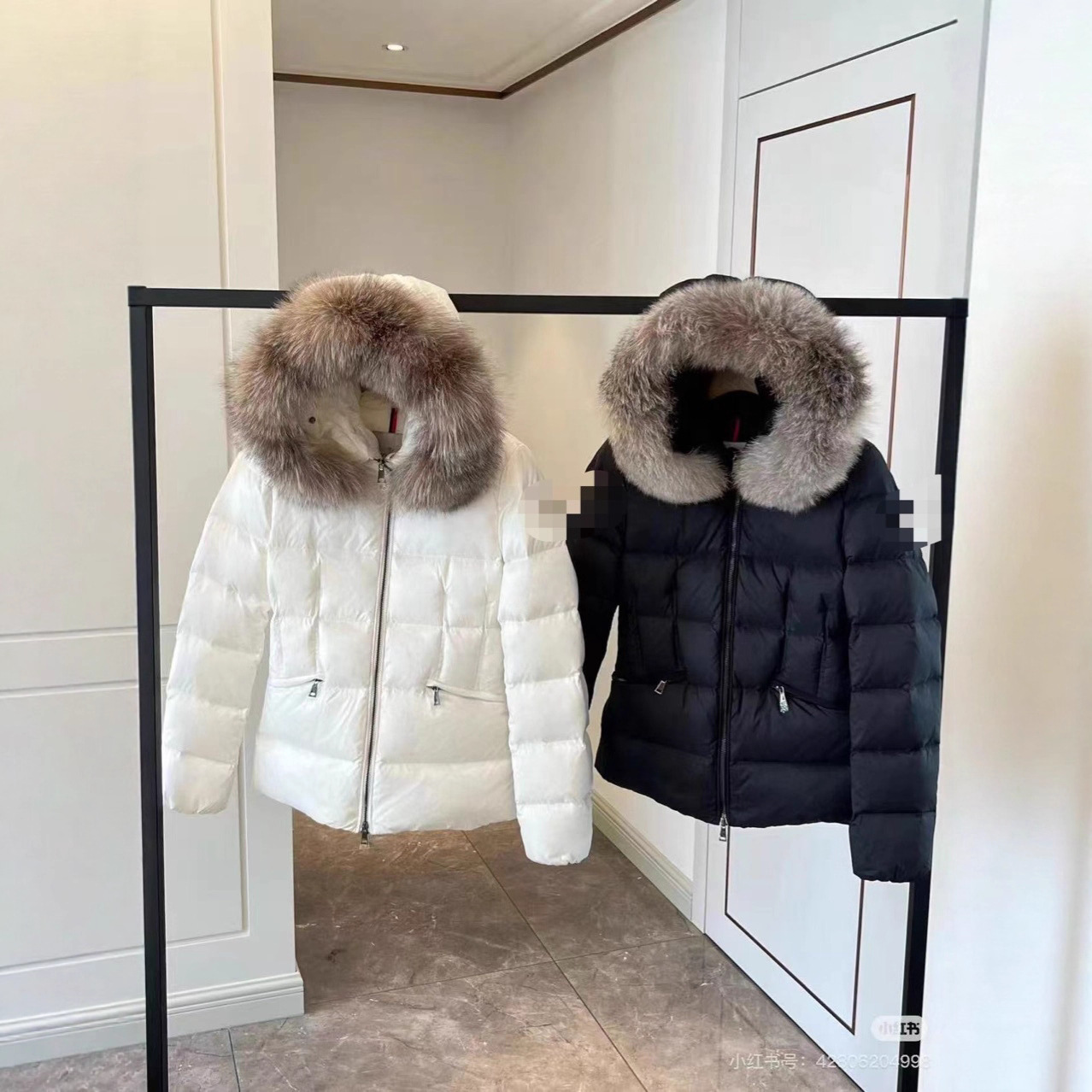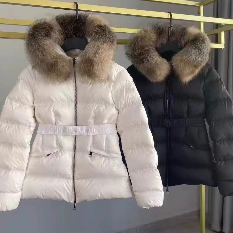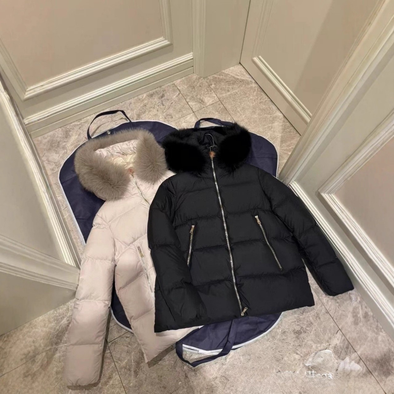 跨境优选正确高版本m家白鸭绒羽绒服 修身显瘦大狐毛领连帽羽绒服