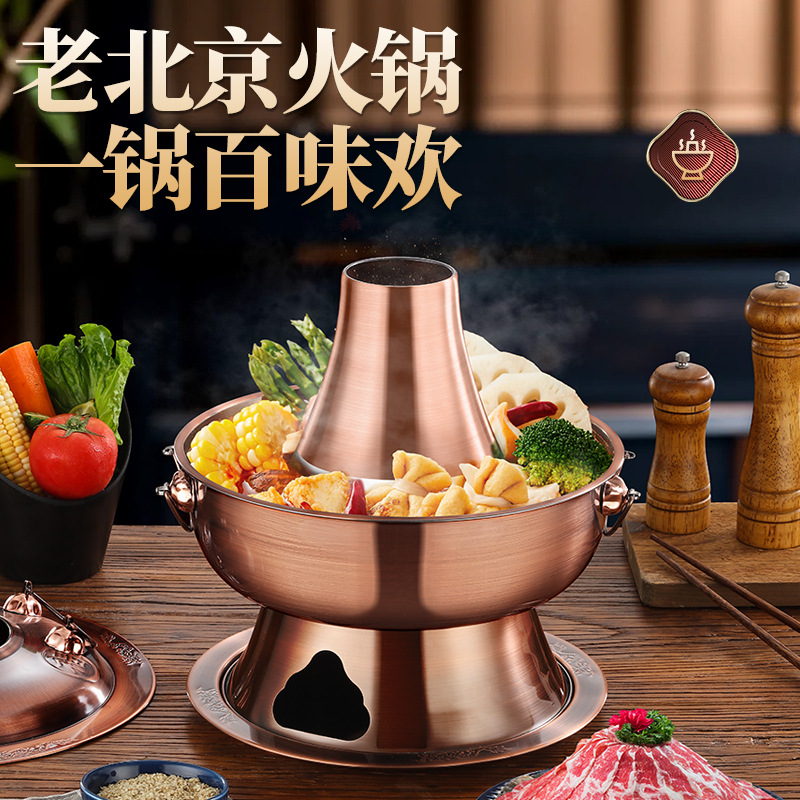 铜火锅木炭特厚老北京涮肉专用鸳鸯锅老式家用手工铜锅紫铜炉商用