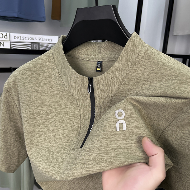 新品夏季男式短袖半拉链T恤衫中青年男装上衣凉爽透气半袖体恤男