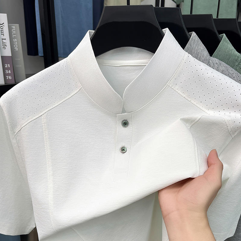 夏季男式短袖立领T恤衫休闲男装上衣凉感透气半袖体恤男 现货代发