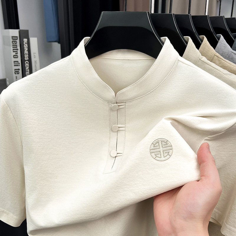 夏季男式短袖立领复古盘扣T恤衫休闲男装上衣凉爽透气中国风t恤男