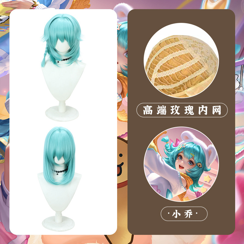 王者 小乔线条小狗联名皮肤cos假发 游戏头皮顶分体麻花辫