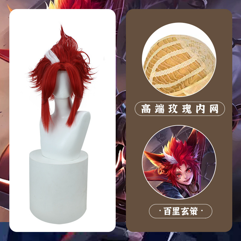 王者荣耀 百里玄策 cos假发 短款反翘美人尖 中国 红色 现货