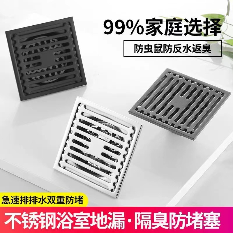 加厚地漏304不锈钢淋浴室卫生间厕所家用工程枪灰色防臭下水地漏