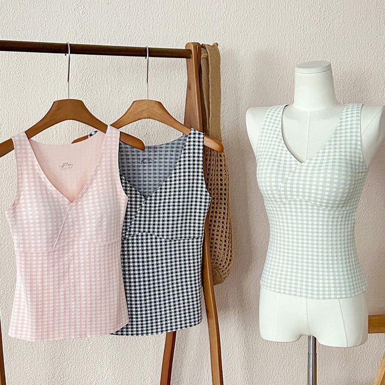 秋季2025新款格子保暖宽肩无痕背心内搭可外穿带胸垫打底一体上衣