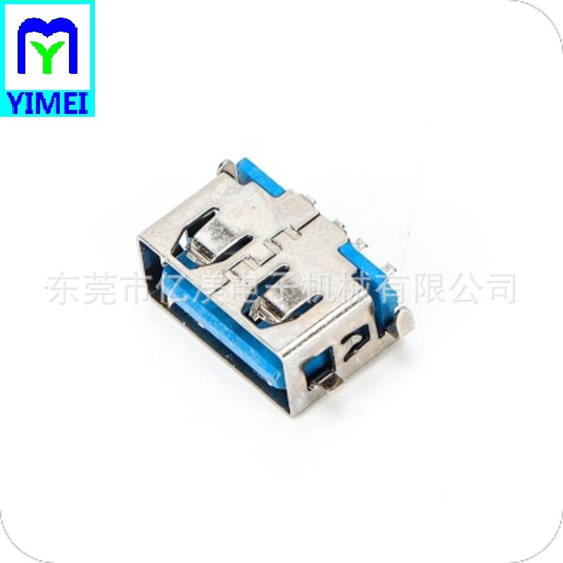 USB3.0连接器AF母座沉板3.5 无卷边蓝胶U3 A母沉板3.5蓝胶六只脚