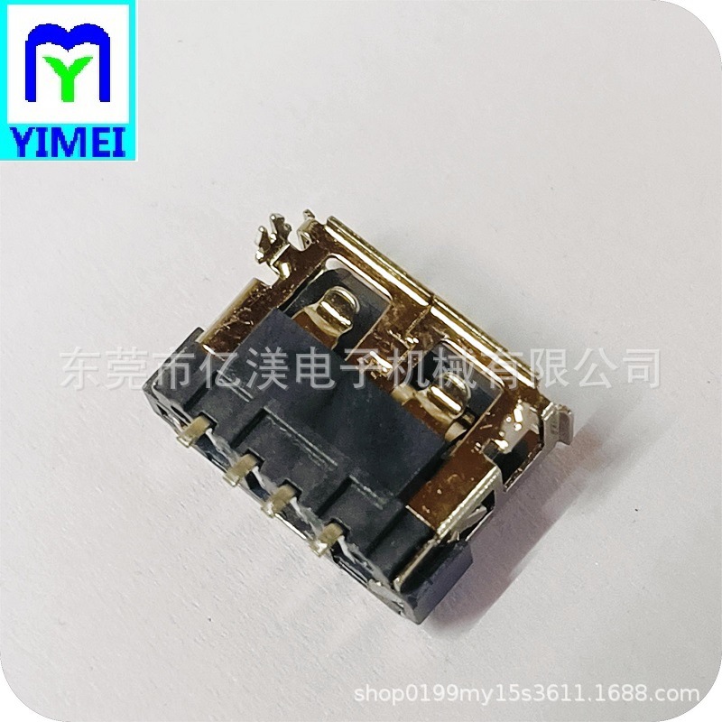 USB2.0连接器AF短体贴板SMT黑胶H6.3高USB2.0母座短体贴板SMT黑胶