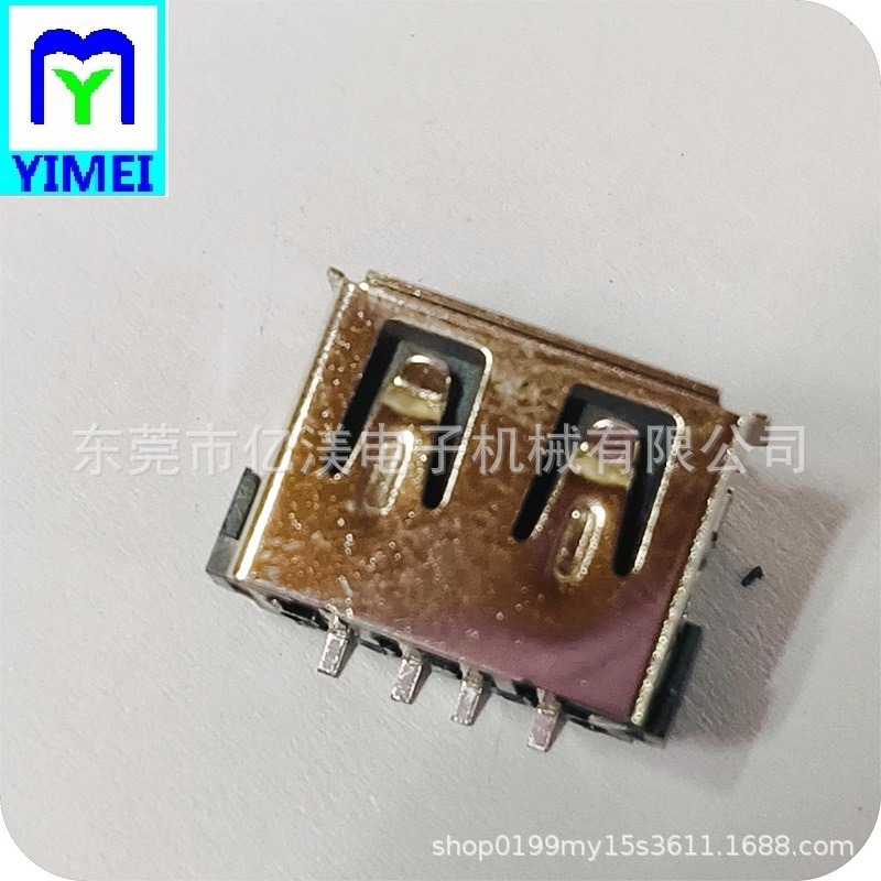 USB3.0连接器AF母座沉板2.45 无卷边U3 A母沉板2.45黑胶两只脚