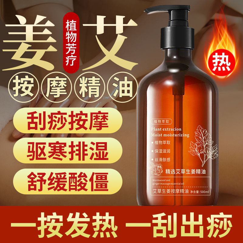 老姜按摩精油全身肩颈开背通经络艾草发热刮痧按摩精油