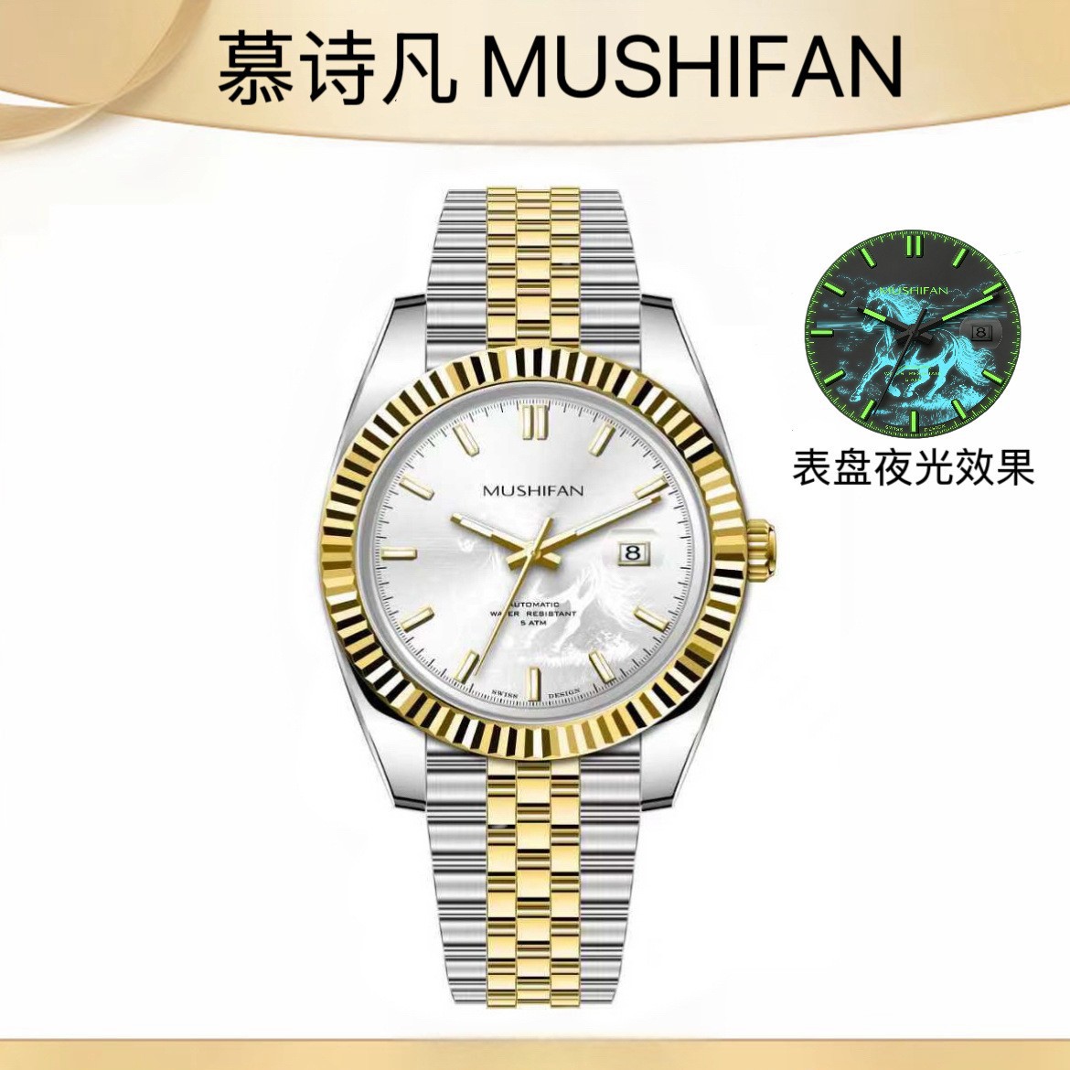 高端间金精钢五珠带男士商务机械表经典日志夜光男士手表机械表