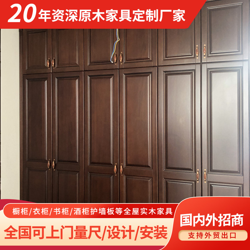定制全屋实木整体衣帽间衣柜中式风广州原木家具招代理商衣橱家用