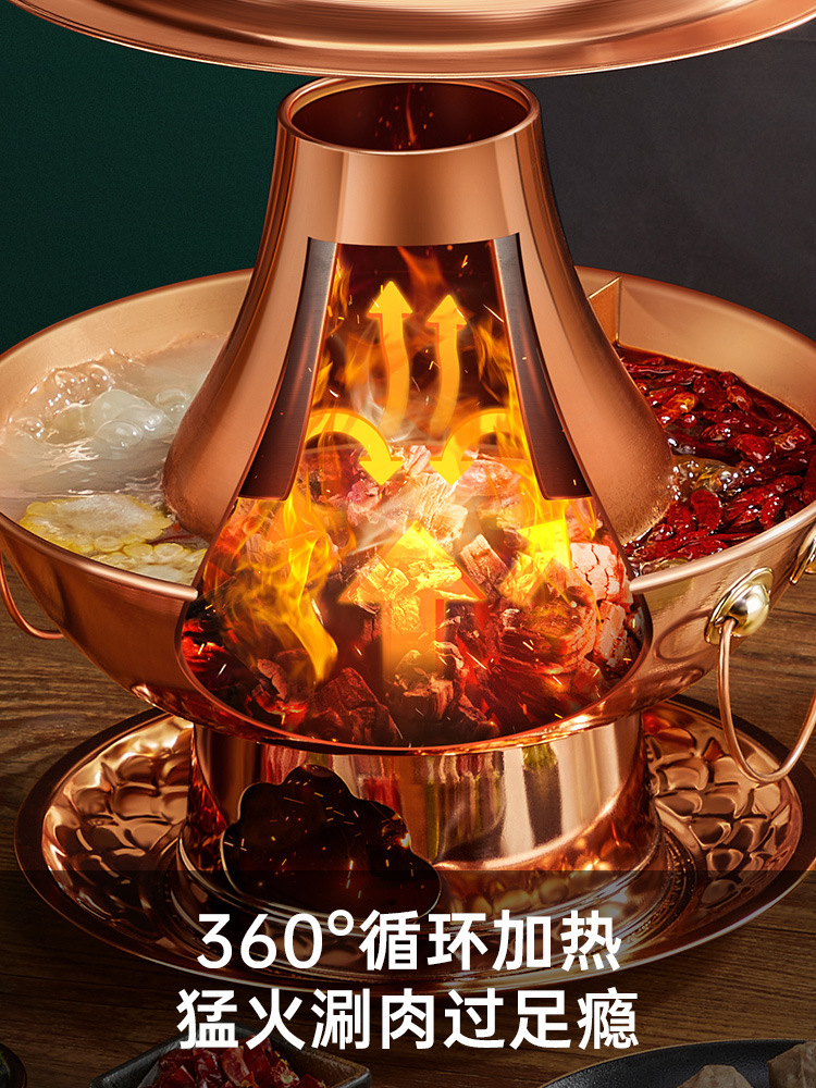老北京铜火锅木炭纯铜家用老式鸳鸯锅特厚铜锅火锅木碳涮羊肉锅具