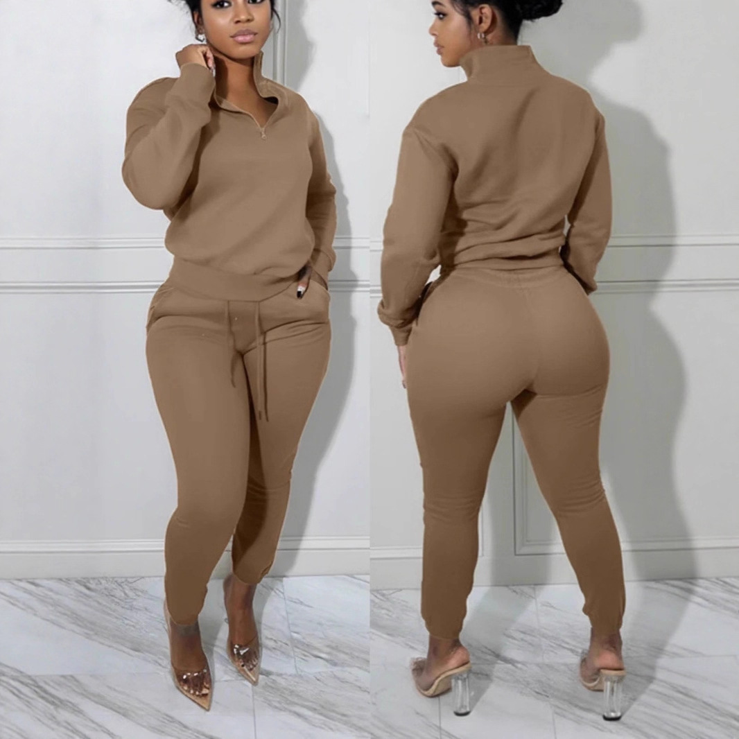 2025欧美跨境女装亚马逊秋冬纯色翻领长袖外套时尚紧身套装休闲