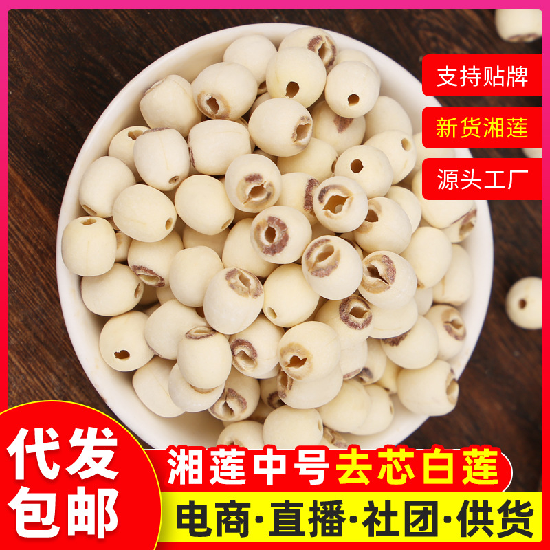 中药材批发中小粒莲去芯白莲湖南湘潭白莲子通芯磨皮莲子500g代发