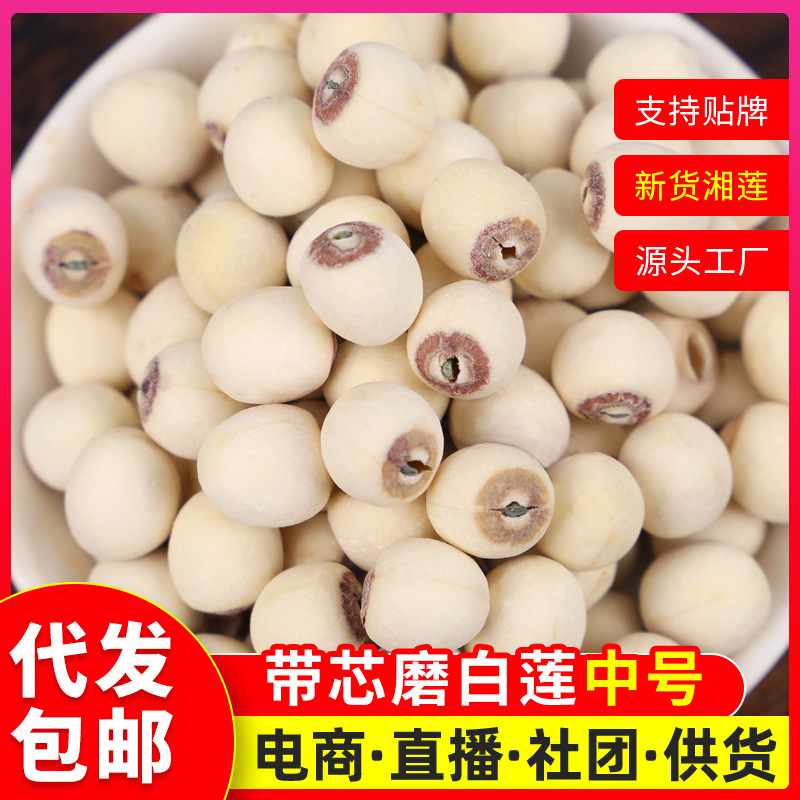 湘莲白莲子带芯磨白莲磨皮湘潭寸三莲500g产地批发散装莲香