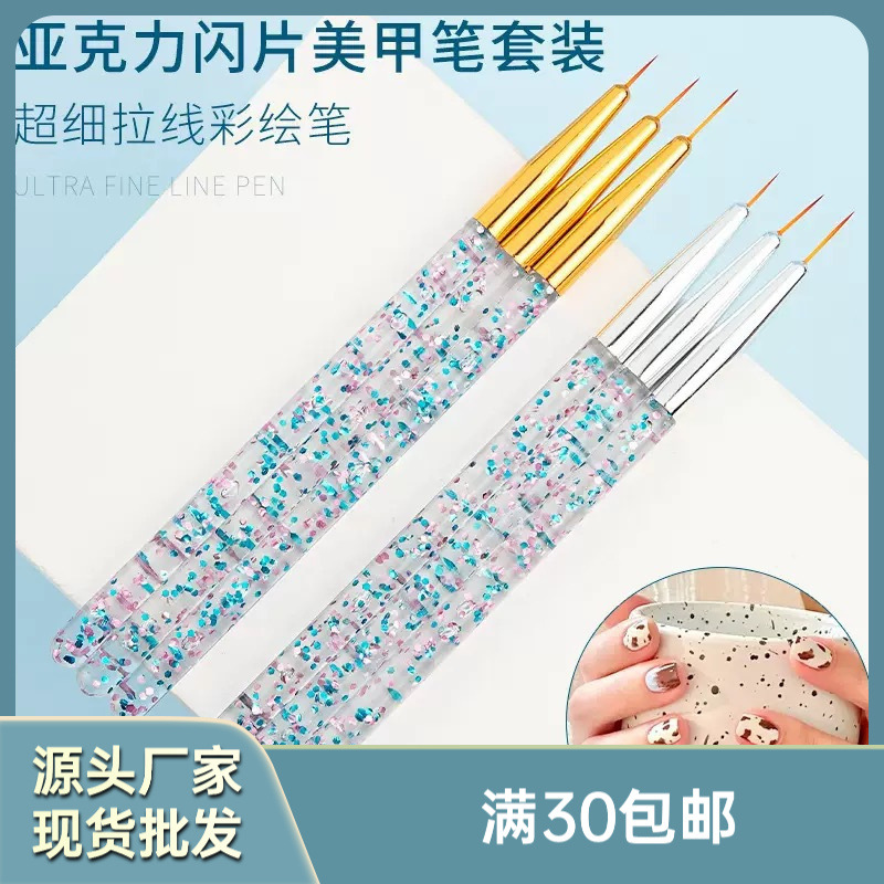 美甲工具3支套装亚克力亮片杆笔刷水晶光疗拉线笔勾线笔 美甲专用
