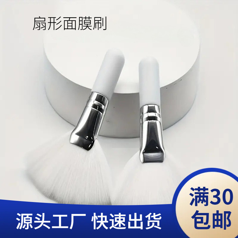 扇形蓬松柔软纤维毛化妆刷余粉美容院打泡沫刷面部白色迷你