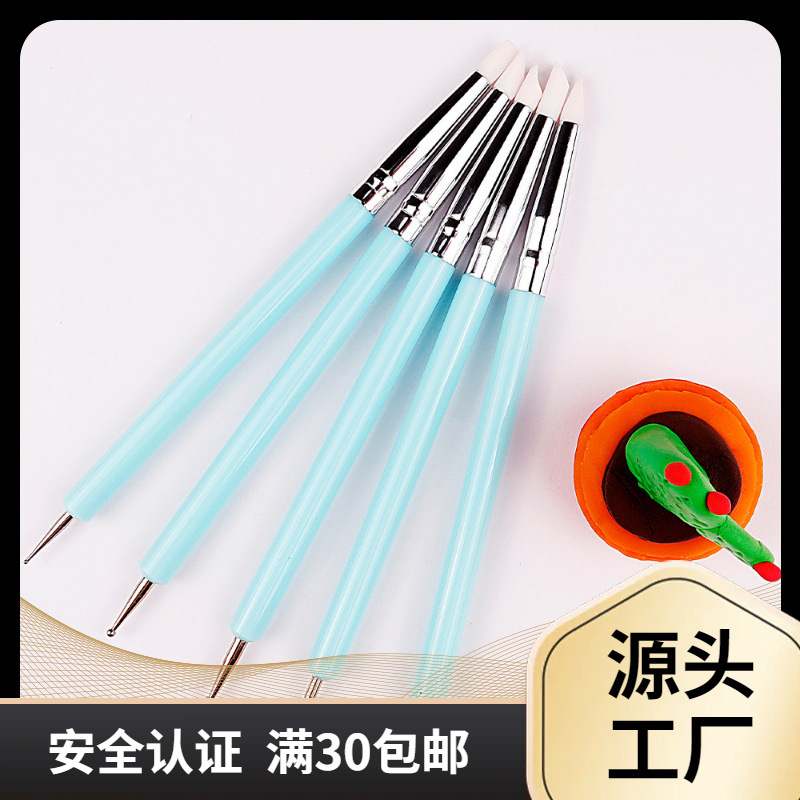 5支装双头美甲蓝杆硅胶笔钢推点钻多用工具美甲店专用推荐笔直销