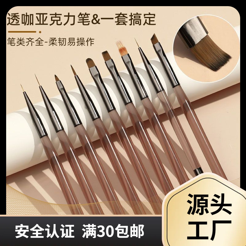 9支装透明杆美甲笔套装勾线填色彩绘多用途美甲工具笔美甲店专用