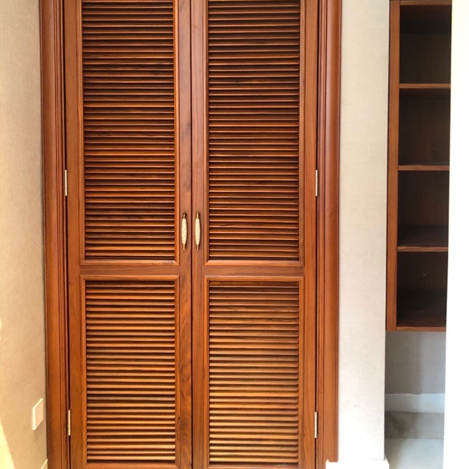 厂家直销缅甸柚木开放百叶门可提供尺寸来图生产中式风木质衣柜门