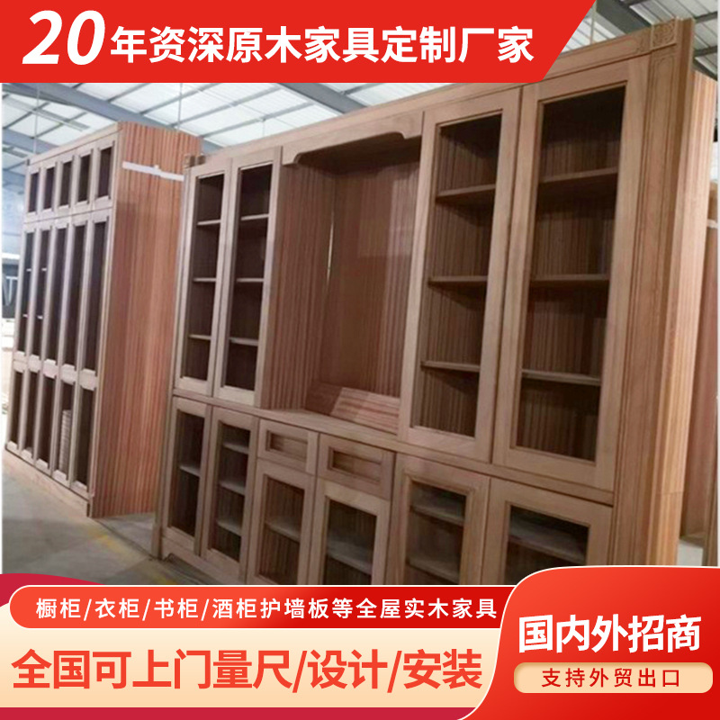 工厂销售全屋原木柜 生产订 做实木书柜书架带门家用书桌组合家具