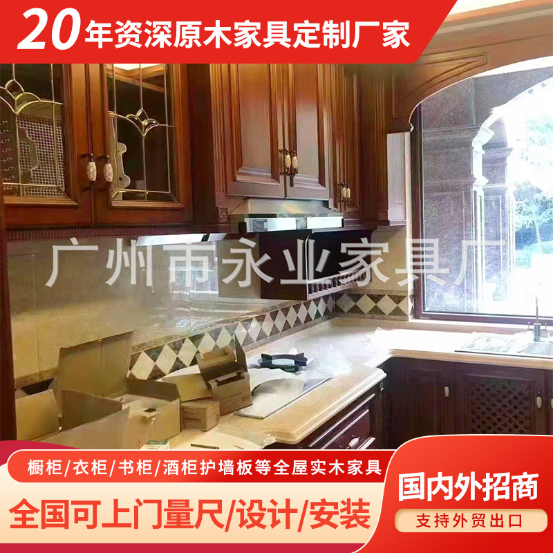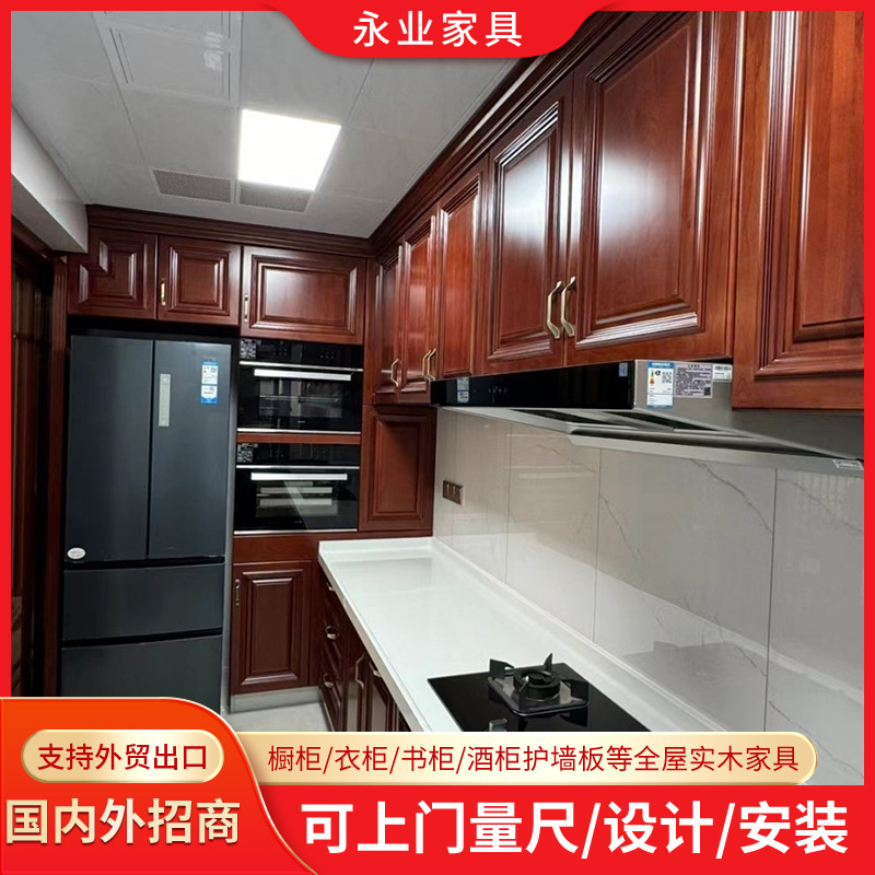 厂家外贸出口橱柜整套厨房储物柜中式风实木家装厨房设计定制厨柜