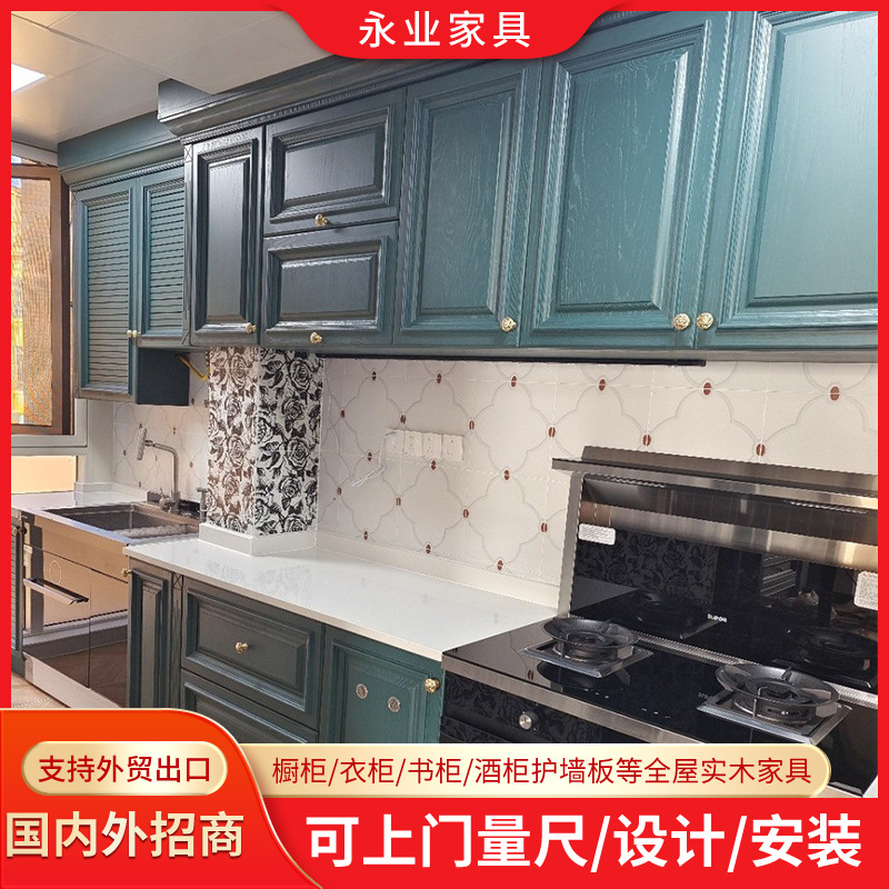 厂家跨境全屋家具柜定制开放式厨房高定实木橱柜复古轻奢撞色定做